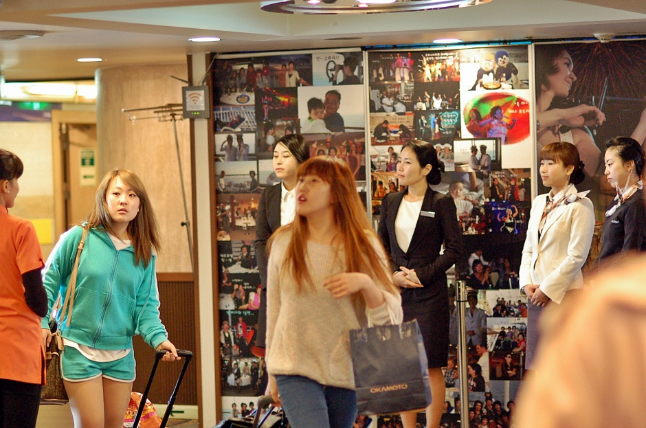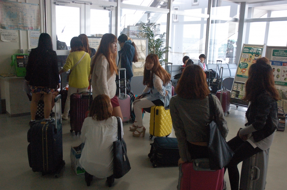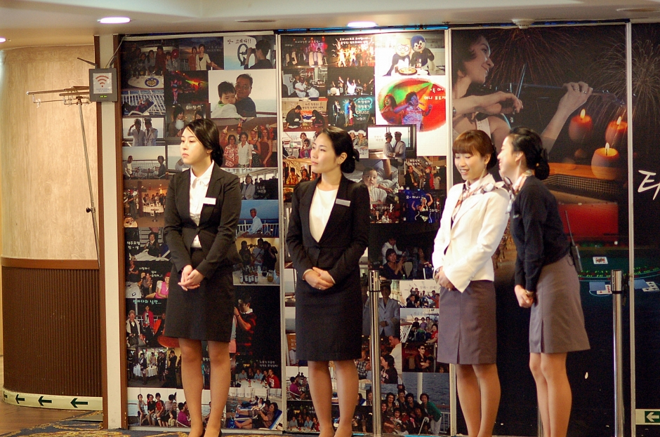 "부산여대 올라옵니다...긴장!!"....수근수근 거리다가..반갑게 맞아주는 승무원 언니들...