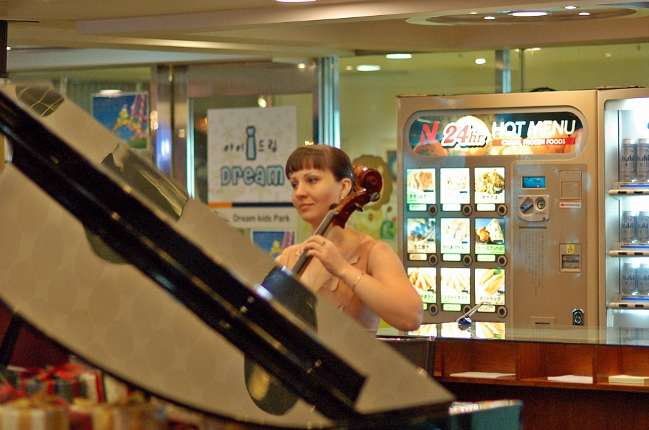 그렇게..식사를 마치고..다시 우아하게(?) 첼로연주가 반겨주는 팬스타에 승선을 합니다...